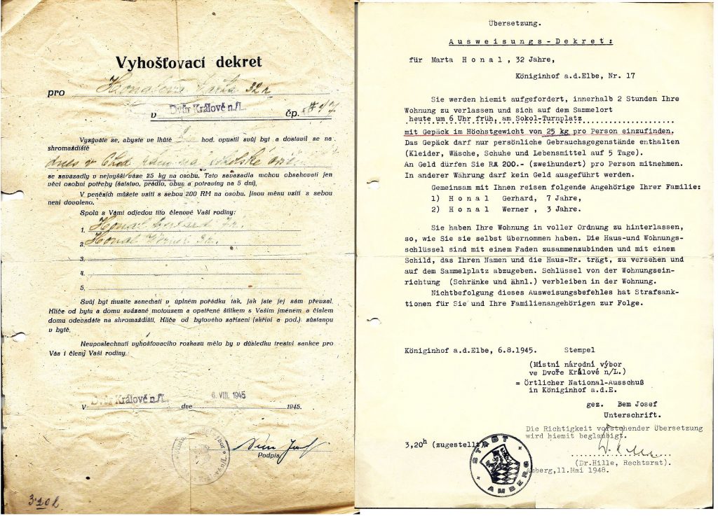 VERTREIBUNG der Familie Martha Honal mit 2 Kindern und den Großeltern Patzak im August 1945